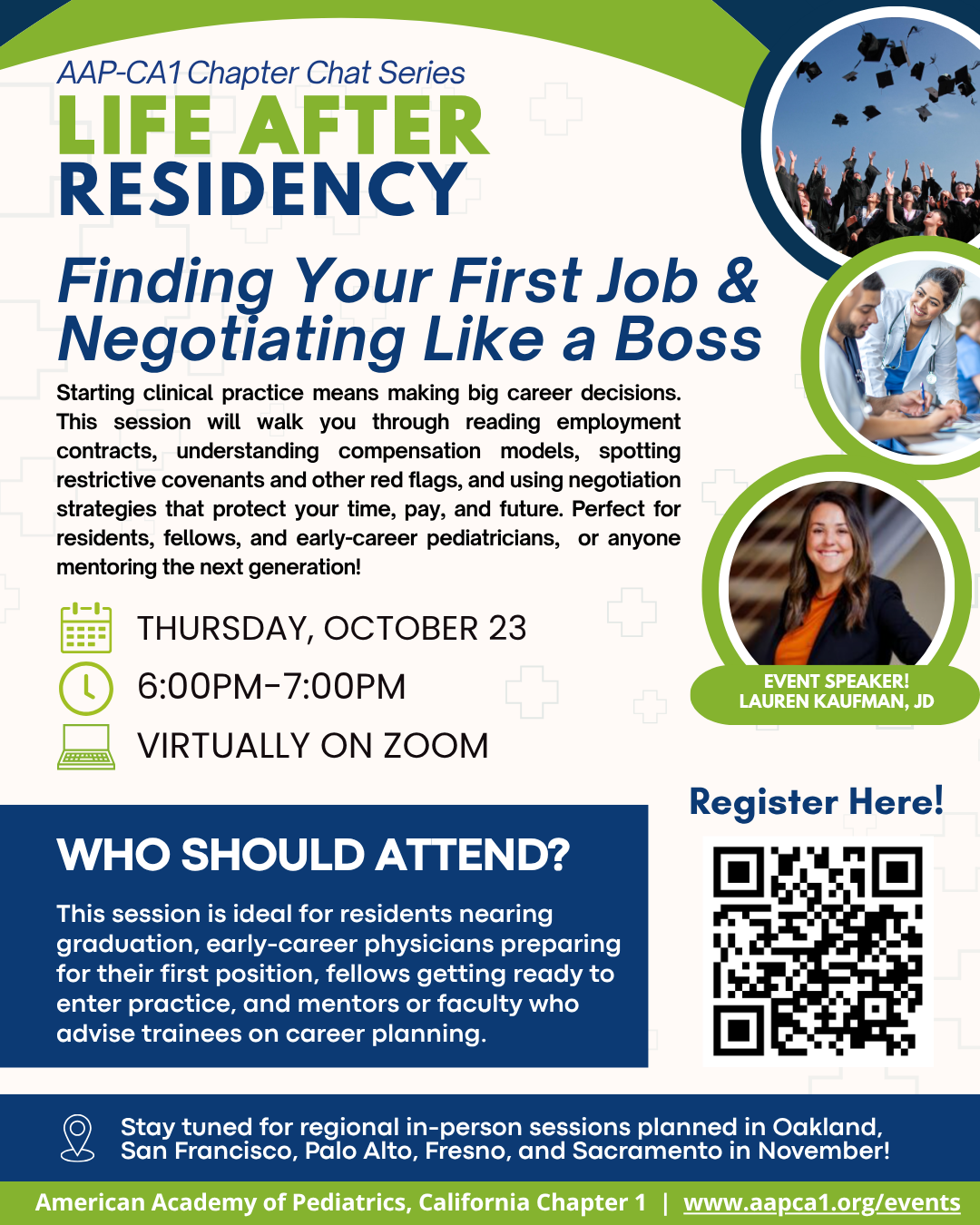 Employment contracts and negotiation are essential skills for pediatricians starting clinical practice — they determine compensation, schedule, and long-term career flexibility. Join us on Thursday, October 23 from 6-7 PM! This chapter chat will introduce participants to reading and interpreting employment agreements, understanding compensation models, spotting restrictive covenants and other red flags, interpreting termination and benefits language, and practical negotiation strategies you can use from day one. Whether you’re finishing residency, applying for your first position, or advising trainees, this chapter chat will provide the tools to negotiate confidently and start your career on the best possible terms.