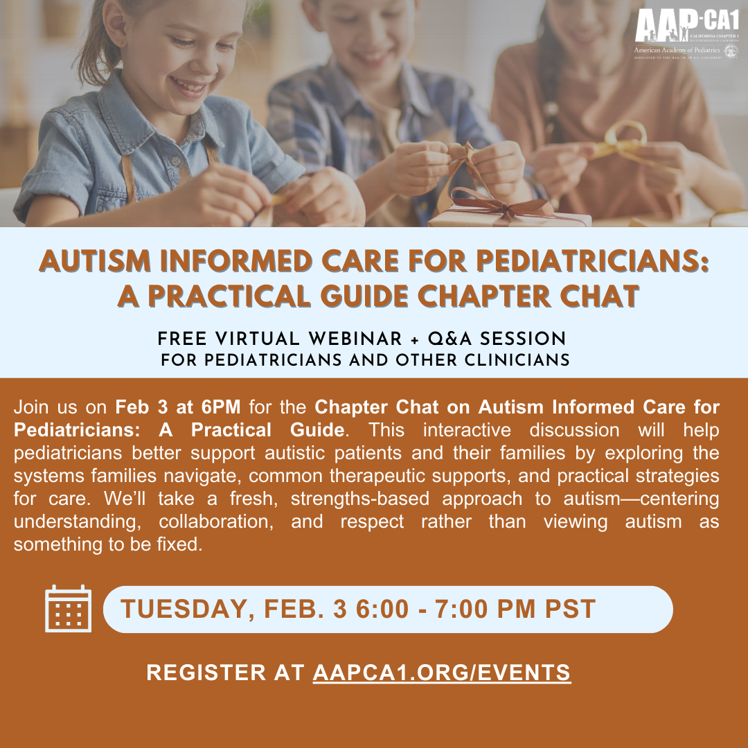 Join us on Feb 3 at 6PM for the Chapter Chat on Autism Informed Care for Pediatricians: A Practical Guide.This interactive discussion will help pediatricians better support autistic patients and their families by exploring the systems families navigate, common therapeutic supports, and practical strategies for care. We’ll take a fresh, strengths-based approach to autism—centering understanding, […]