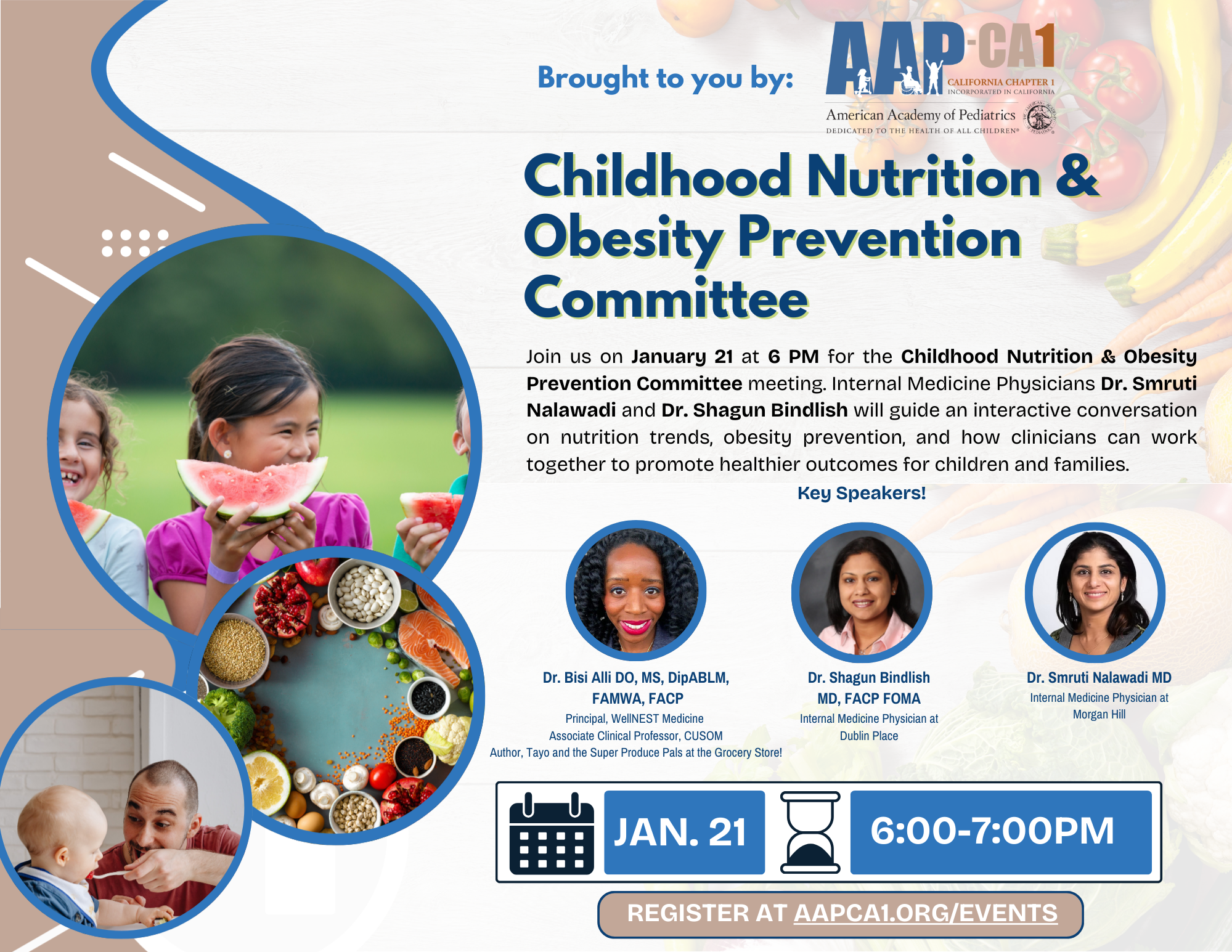 Join us on January 21 at 6 PM for the Childhood Nutrition & Obesity Prevention Committee meeting. Internal Medicine Physicians Dr. Smruti Nalawadi and Dr. Shagun Bindlish will guide an interactive conversation on nutrition trends, obesity prevention, and how clinicians can work together to promote healthier outcomes for children and families. Agenda Highlights Dr. Chamarathi will […]