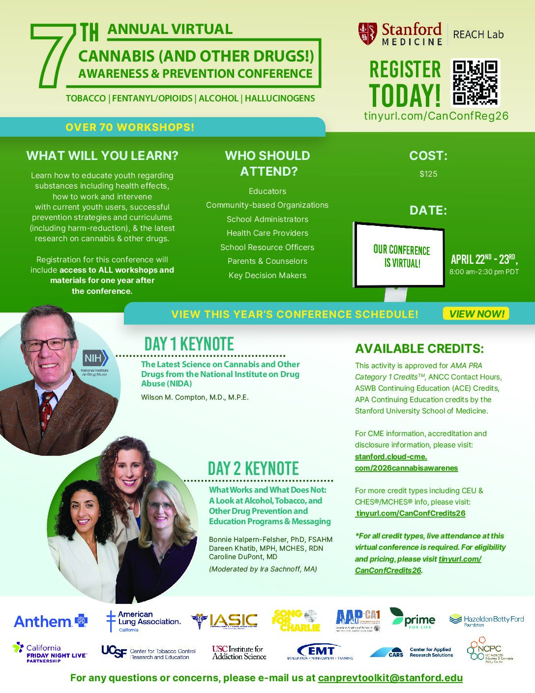 We’re excited to share AAP-CA1 will be a Co-Sponsor of the upcoming 7th Annual Teaching Cannabis (and other Drugs) Awareness and Prevention Virtual Conference, being held on April 22nd-23rd, 2026. With over 70 dynamic workshops, the conference offers valuable insights into substance education, prevention strategies, and the latest research on cannabis and other drugs. View the Conference Flyer here.