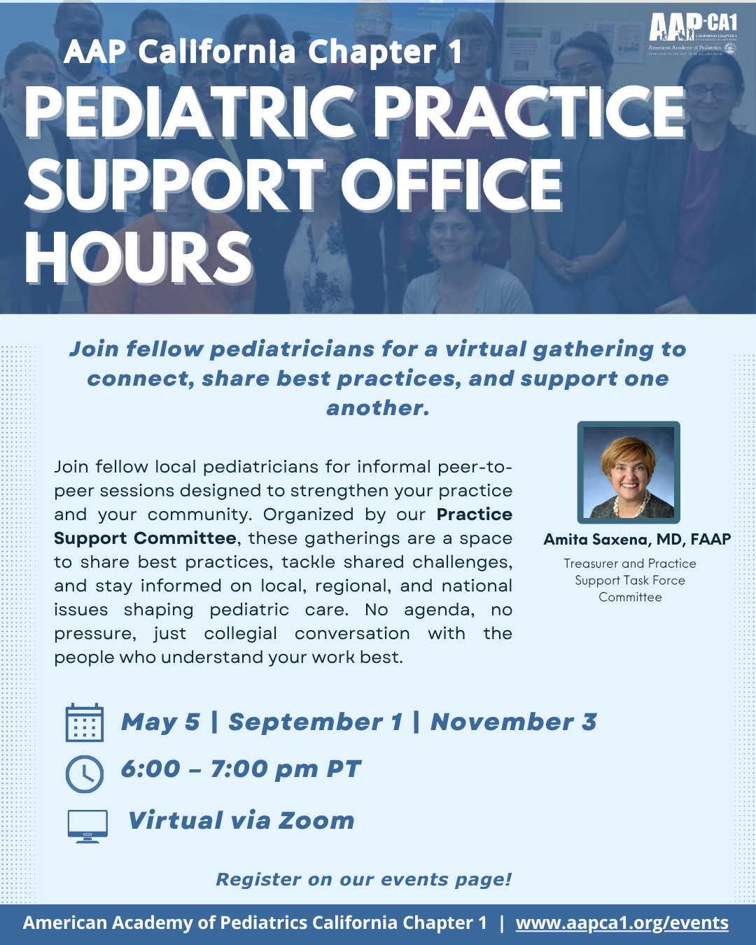 This meeting will highlight key updates from the Chapter, reflect on accomplishments from the past year, and outline priorities for the year ahead. Members will have the opportunity to connect with Chapter leadership, stay informed on advocacy efforts, and learn how to remain engaged in advancing the health and well-being of children across California.
